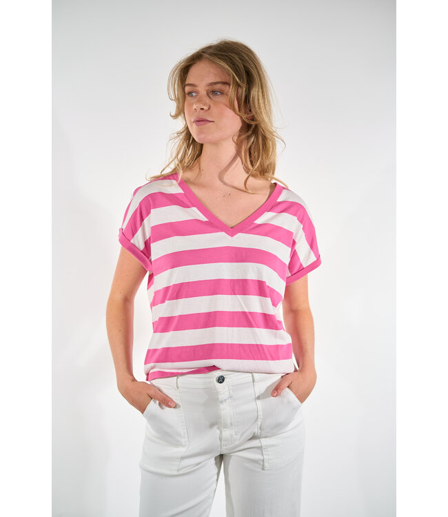 T-shirt van Majestic Filatures, dit shirt heeft een v-hals en horizontale strepen. Lees meer.