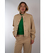 Jas van Marc Cain met een opstaande kraag, een knoopsluiting en lage mouwen met elastische boord. Het is een kort model en heeft een aantrekkoord rond de zoom.