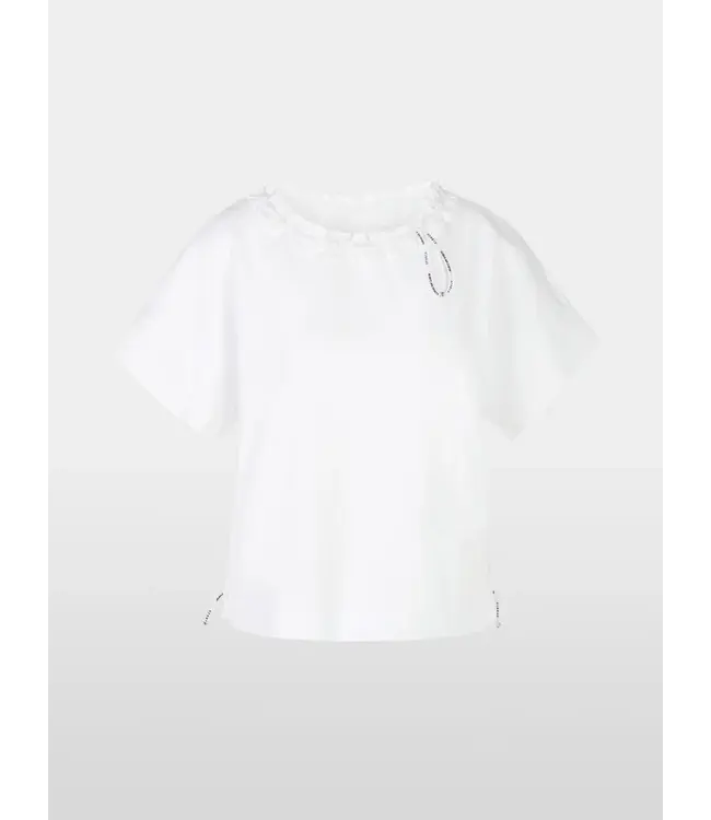 Het opvallende aan dit T-shirt is de ronde hals met tunnelkoord, die zorgt voor een speelse ruches-look. Het shirt heeft een losse pasvorm met een individueel verstelbare achterkant. Een opgestikte zak en mouwen met split maken de casual stijl compleet.