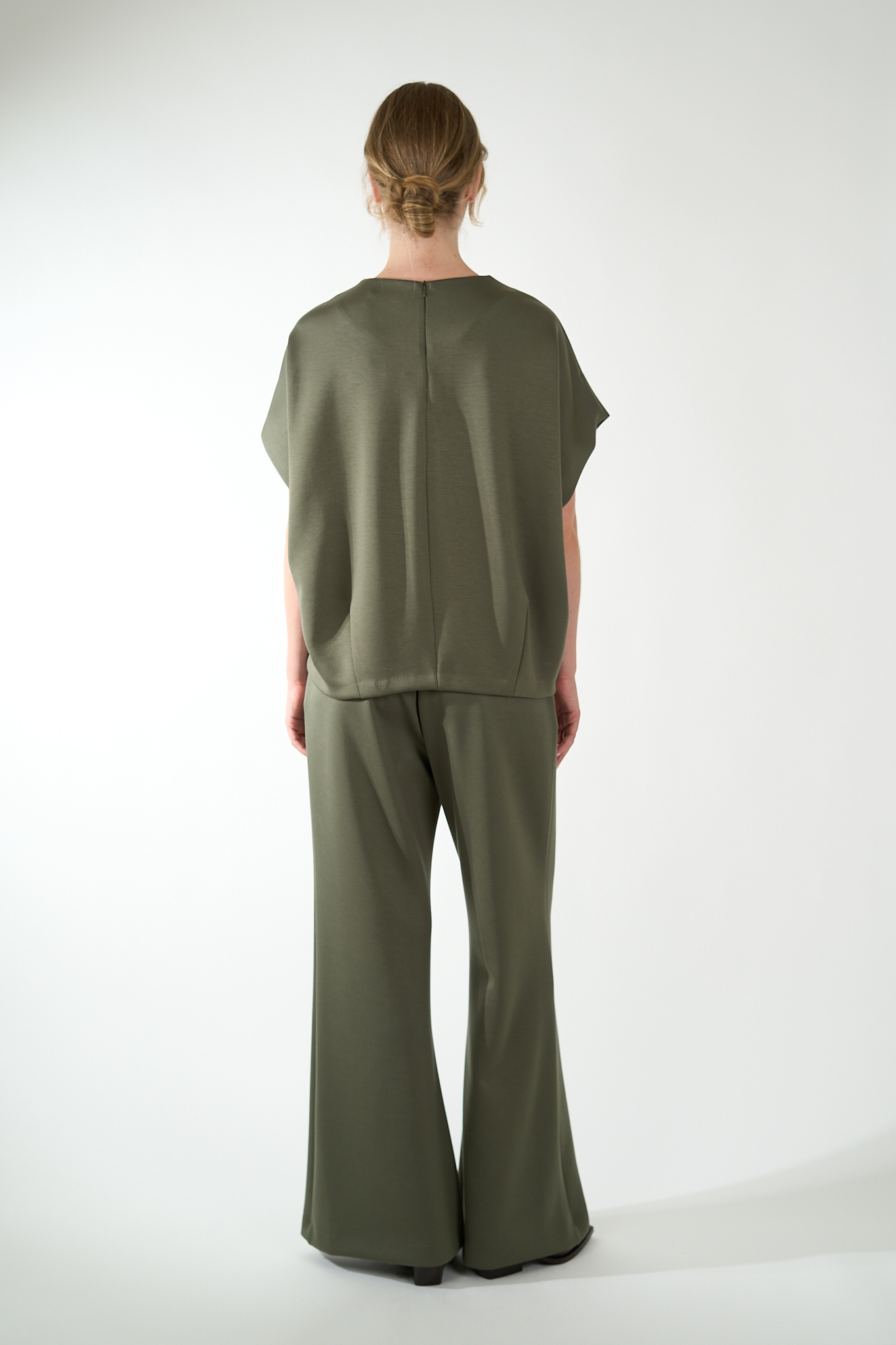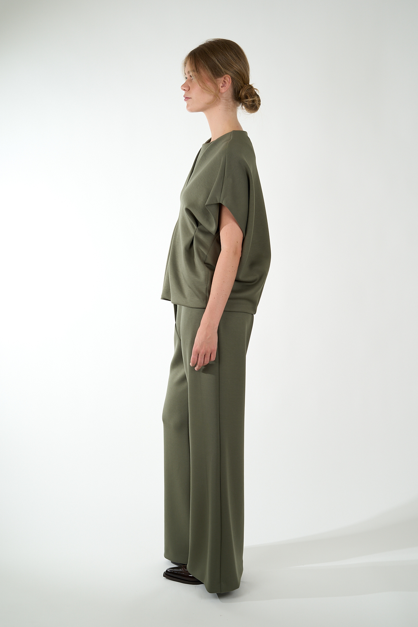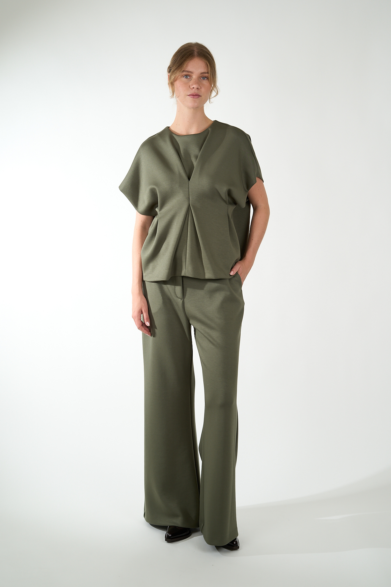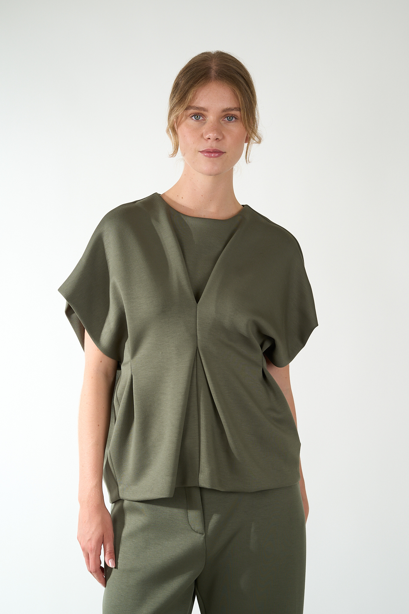 Wijde top van MEI MEI met korte mouwen. Dit model heeft plooidetails in de taille op het voorpand en een ronde hals met ritssluiting middenachter.