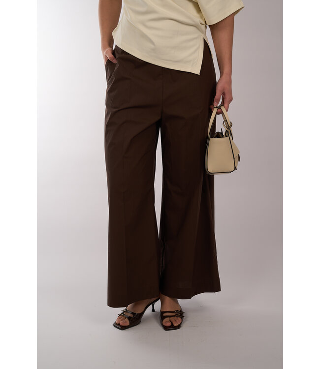 Pantalon van Mei Meij met een hoge taille, een elastische tailleband en is voorzien van steekzakken. De pantalon heeft een recht vallende pijp.
