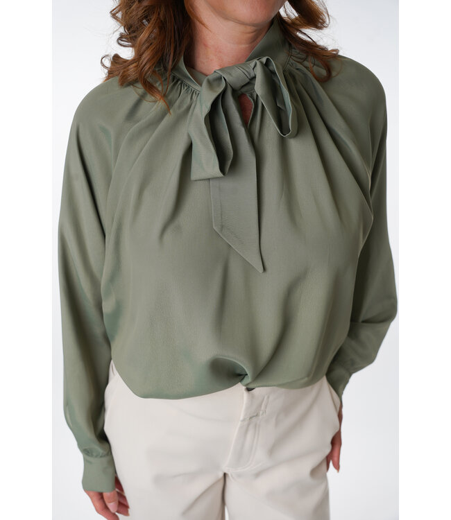 Oversized blouse van MOMONI met gerimpelde halslijn voor en achter. V-hals met striksluiting, lange, wijde raglanmouwen met manchetten met knoopjes. Lees meer.