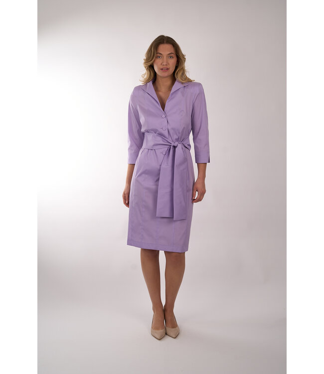 Jurk van MOQ kan gedragen worden met of zonder strik. Het model is bij de taille aangesloten, heeft een knooplsluiting tot de taille, steekzakken en 3/4 mouwen. Lees meer.