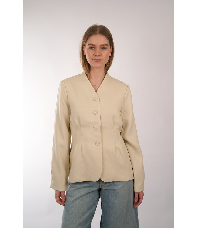 Getailleerde blazer van MSCH Copenhagen met een v-hals, knoopsluiting en plooien in de taille en bij de manchet. Lees meer.