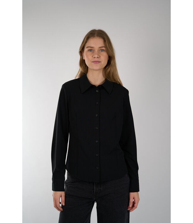 Overhemd met getailleerde pasvorm van My Essential Wardrobe heeft een klassieke puntkraag, volledige knoopsluiting, schoudervulling en lange mouwen met manchetten. Glad, gestroomlijnd ontwerp. Lees meer.