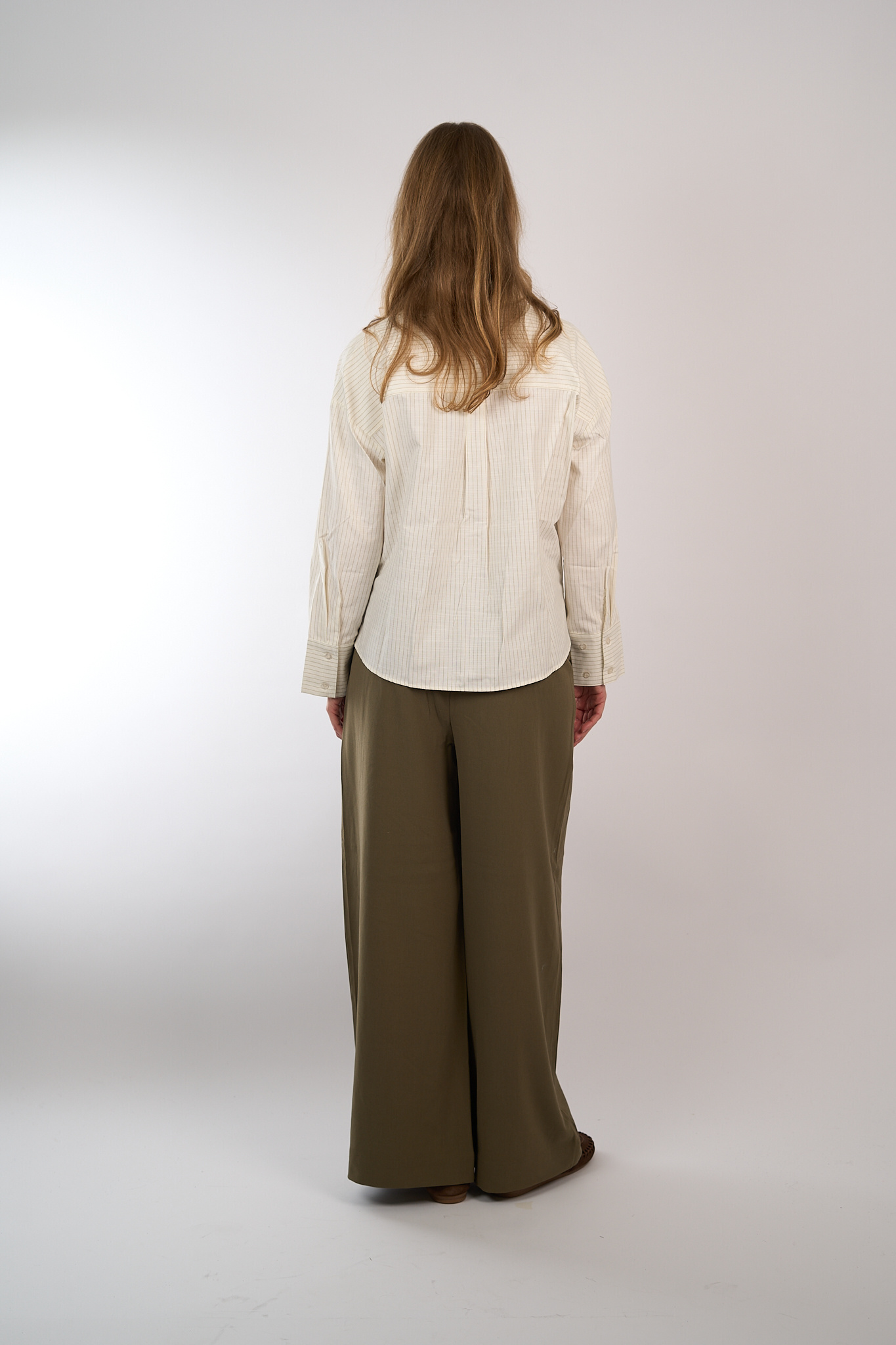 Kleur: Ecru met bruin streepje.