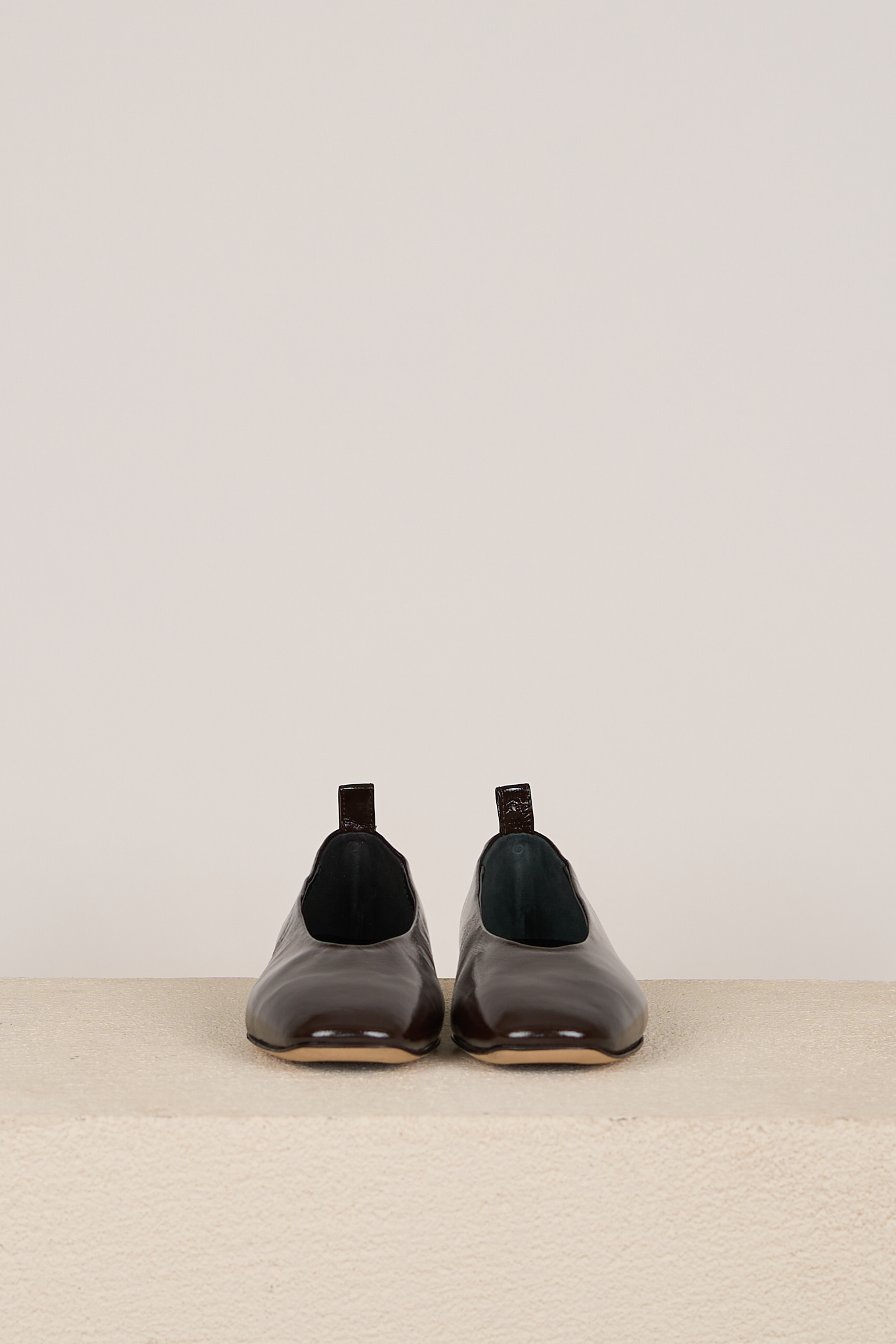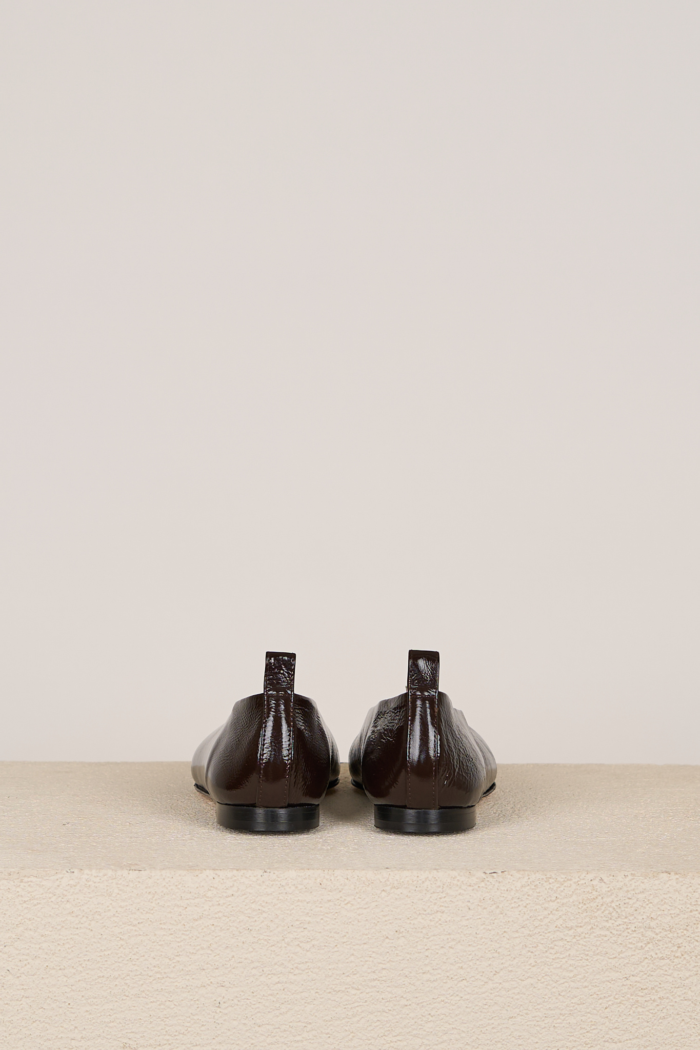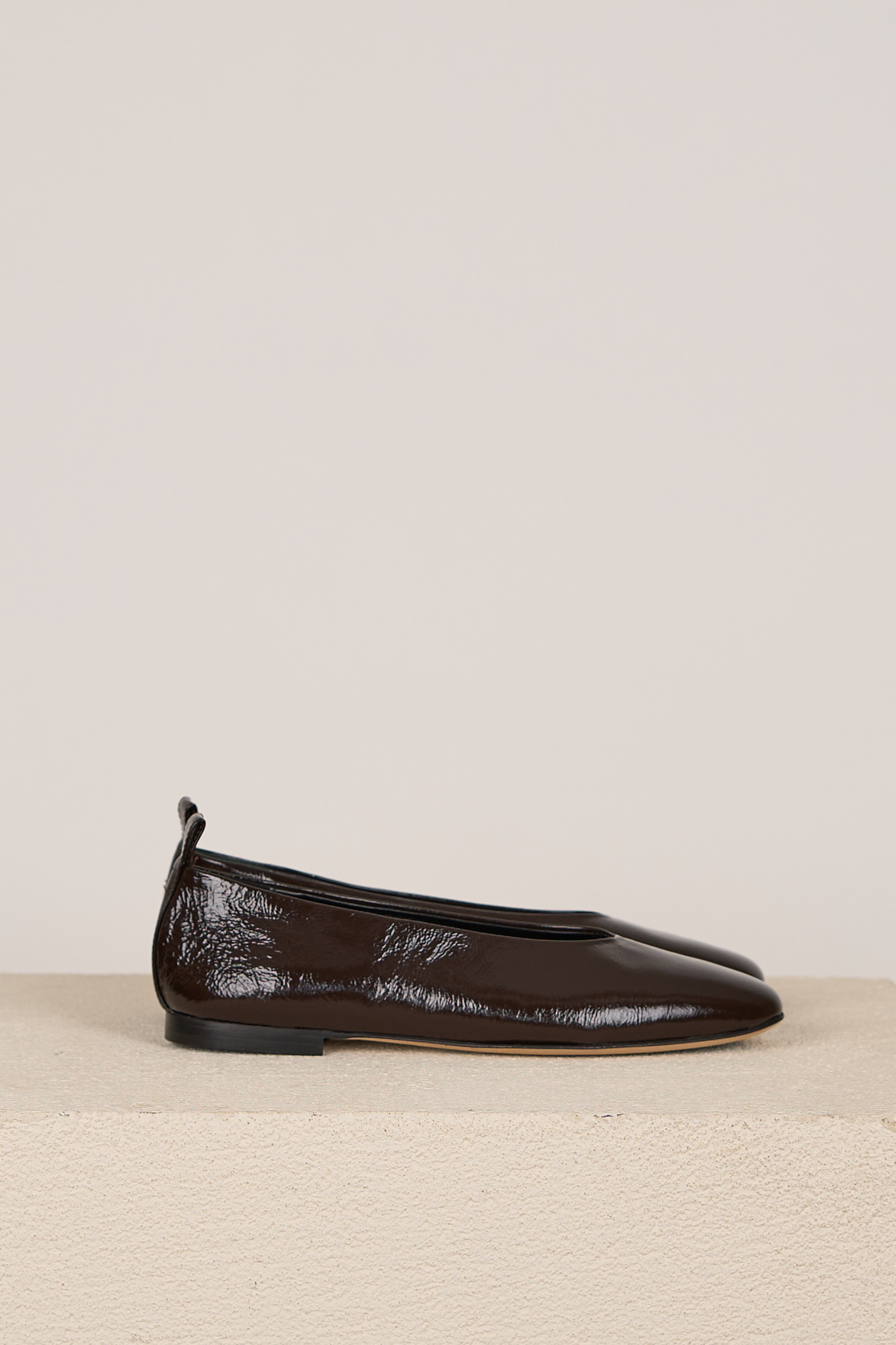 Deze ballerina's van ODARE zijn uitgevoerd in een bruine lakleer. De schoenen hebben een hakhoogte van 0,5 cm en de binnenzijde is bekleed met leer.