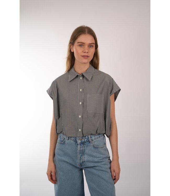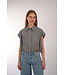 Cropped overhemd top van Ottod'Ame met een wijd ballon silhouet door de elastisch gerimpelde zoom. Voorzien van een kraag, knoopsluiting, kapmouwtjes en een opgestikte borstzak.