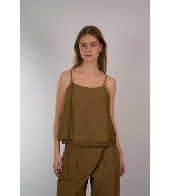 Dubbele top van OttoD'ame met een a-lijn model. Gestrikte dunne schouderbandjes met kraal details en split aan de achterkant. Lees meer.