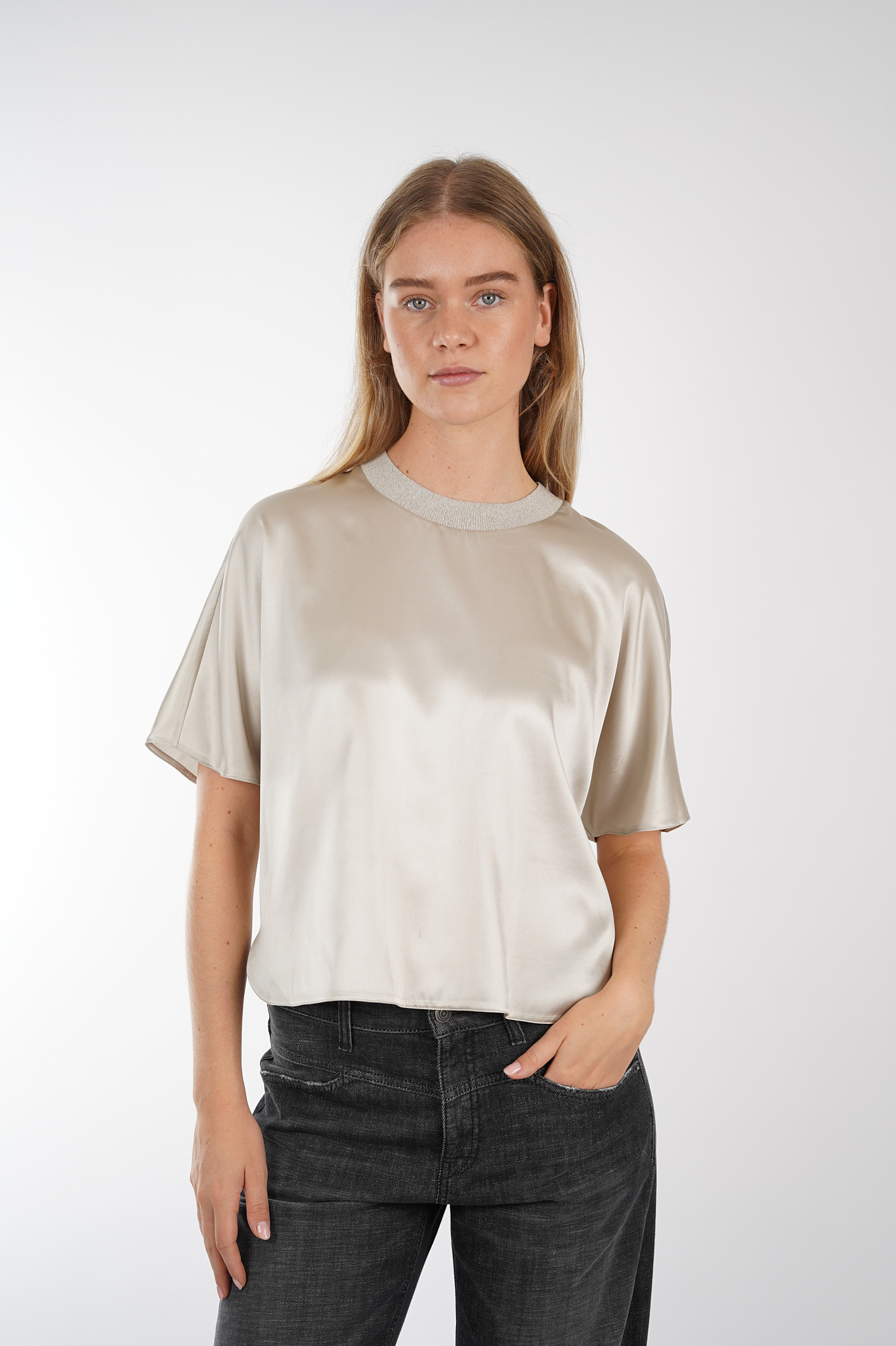 Materiaal: 98% zijde, 2% elastan.