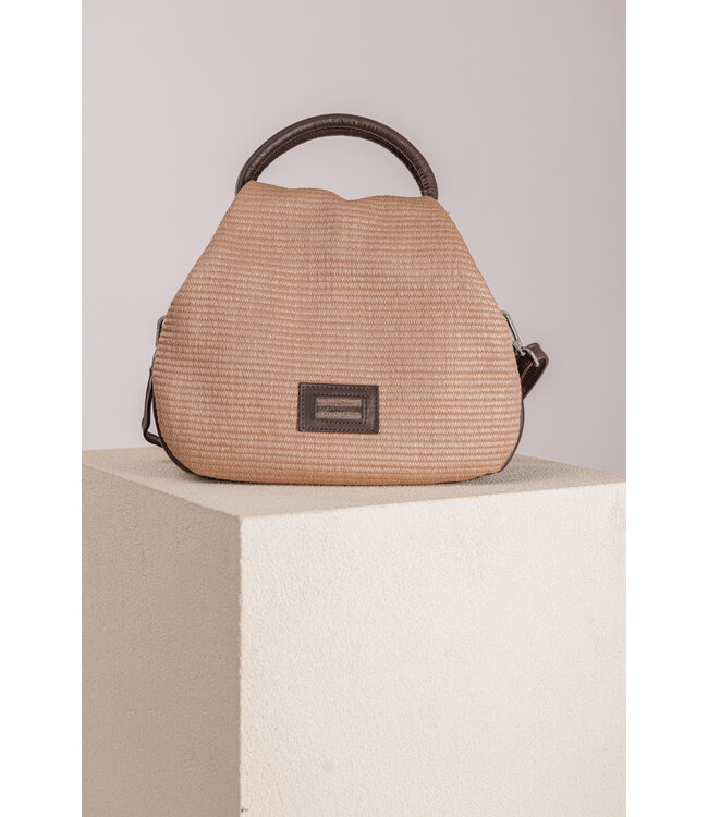 Handtas van Peserico. Deze tas is voorzien van een langere strap. Hij is op twee manieren te dragen; als handtas of als schoudertas. De tas is 32 cm breed en 26 cm hoog (buitenzijde).