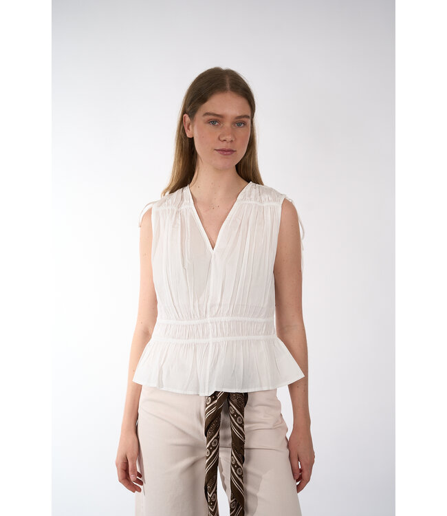 Top van SECOND FEMALE. De mouwloze top heeft een V-hals en een geplooid detail.