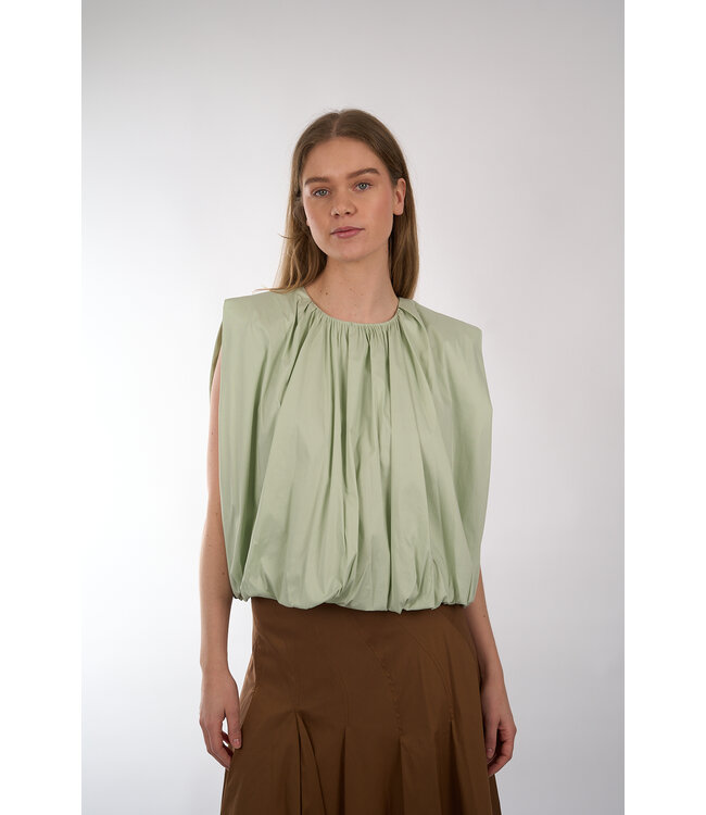 Mouwloze top van Semicouture met gepoft silhouet door de gerimpelde zoom en halslijn. Voorzien van een open rug met striksluiting.