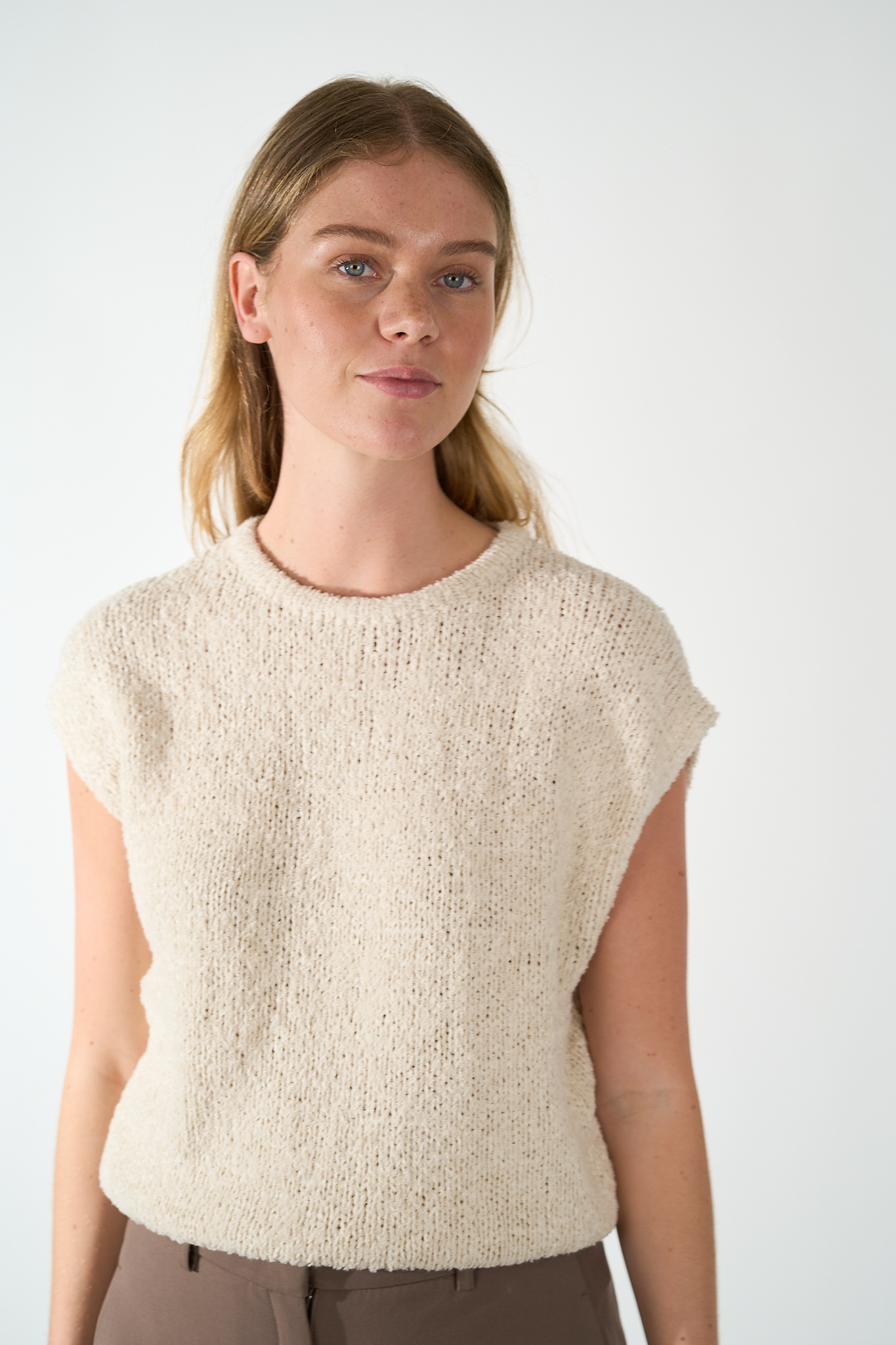 Gebreid gilet pullover van SOMEDAY. Dit model heeft een losse pasvorm met wijde armsgaten, een ronde hals en aangesloten ribboord bij de zoom.