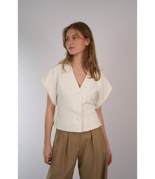Gevoerde top van Suncoo met kapmouwtjes en getailleerde pasvorm. Een V-hals met knoopsluiting van gestoffeerde knopen en een bijpassende tailleriem. Lees meer.