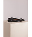 Ballerina van Toral. Deze verfijnde instapper heeft een zwarte neus, decoratief sierstrik op het voorblad en een licht opgevuld, en voorgevormd voetbed. De hoogte van het hakje is 1 cm gemeten vanaf het hoogste punt.