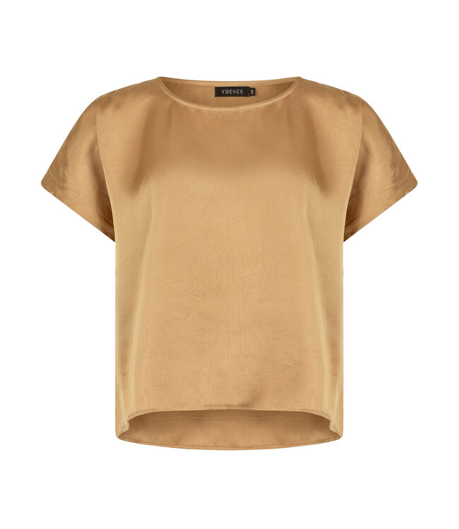 Top van YDENCE, deze top is elegant met een luxueuze satijnlook stof. De achterkant is iets langer dan de voorkant, wat de top een flatterende pasvorm geeft.