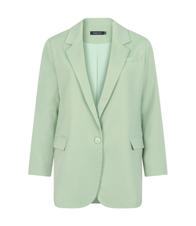 Blazer van YDENCE, deze blazer is oversized. De blazer heeft paspelzakken met klep aan de voorzijde en sluit met een enkele knoopsluiting.