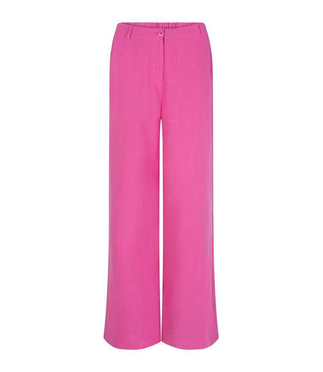 Broek van YDENCE, deze pantalon heeft rechte pijpen, steekzakken en faux-zakken op het achterpand. De broek heeft een elastische tailleband aan de achterzijde.