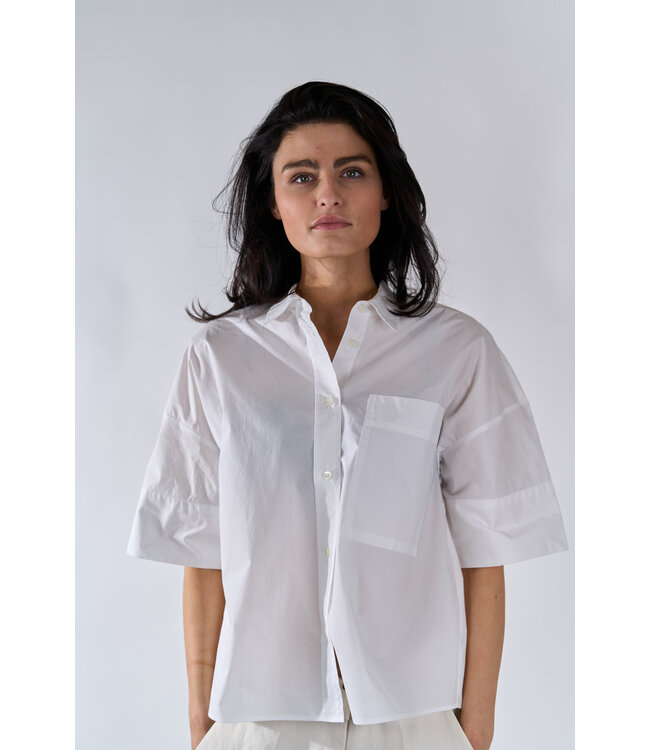 Blouse van ZENGGI, deze blouse heeft een ronde hals met kraag, driekwart mouwen met een brede zoom en steekzakken op het voorpand. Lees meer.