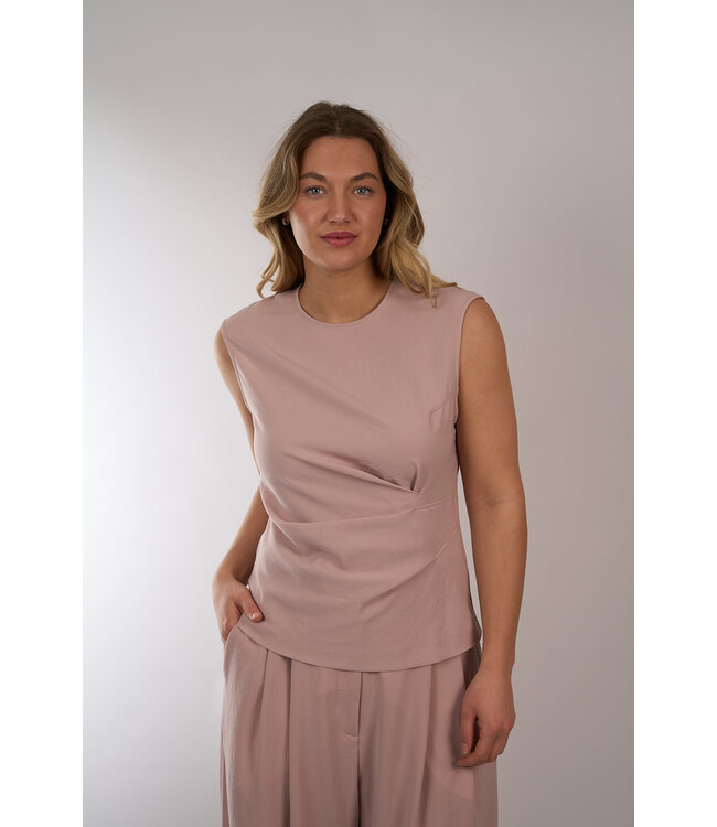 Mouwloze top van Zenggi gemaakt van Japanse Crêpe. Gedrapeerd vanaf de zijnaad. Blinde rits aan de achterkant. Lees meer.
